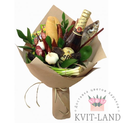 Пиво (на выбор). Колбасные изделия на выбор. Зелень. Рыба. Упаковка.