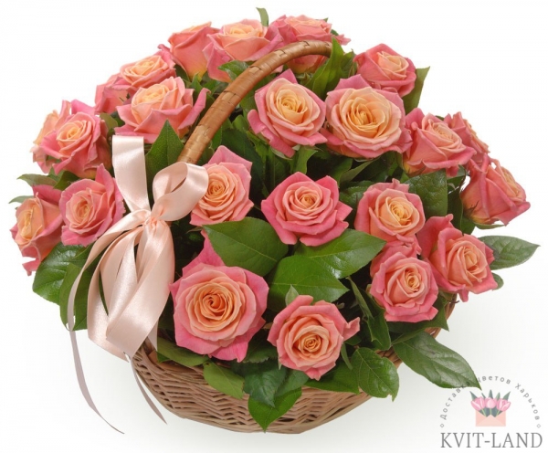 Роза Мисс Пигги (Киев) 21 шт. Корзина.