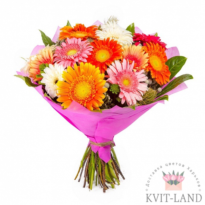 Гербера мікс 11 шт. Упаковка. Зелень.